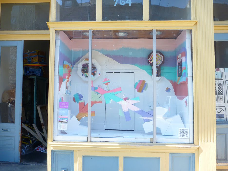 Former Space 1026 intern and current friend and supporter Bradford Haubrich has undertaken an interesting project. Melt. Down. is a melting art installation in a store front window in South Philly. Beginning in early March, the “melts” have morphed the once snow-y landscape into a brighter, colorful assemblage.